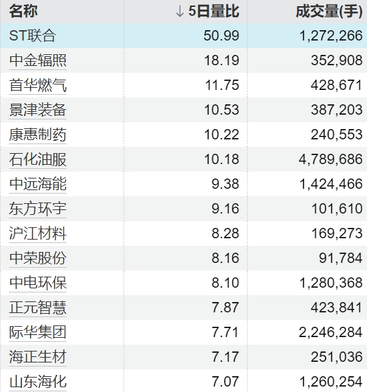 46只个股5日量比超过5倍46只个股5日量比超过5倍