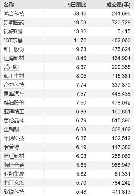29只个股5日量比超过5倍29只个股5日量比超过5倍