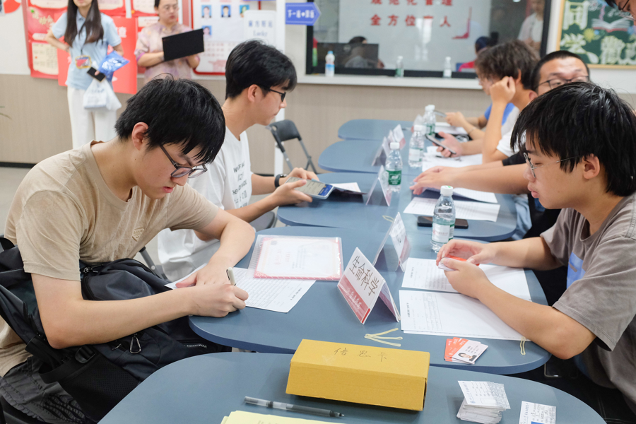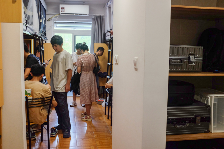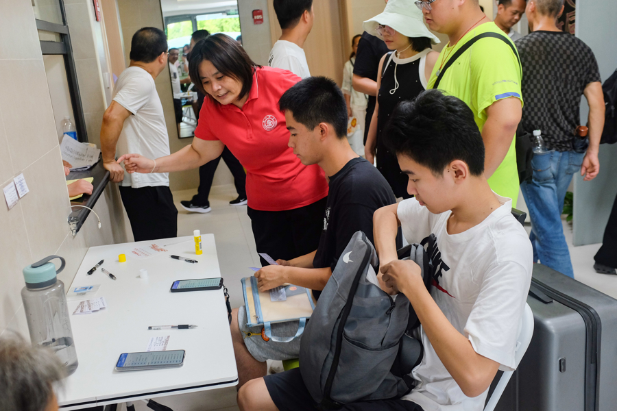 新生在办理入住手续。
