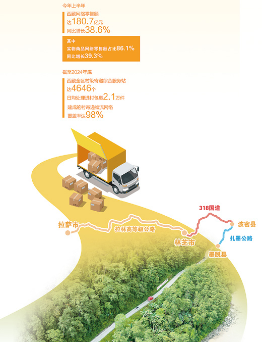 供给完善,激发需求。今年上半年,西藏网络零售额达到180.7亿元,同比增长38.6%。其中,实物商品网络零售额占比86.1%,同比增长39.3%。