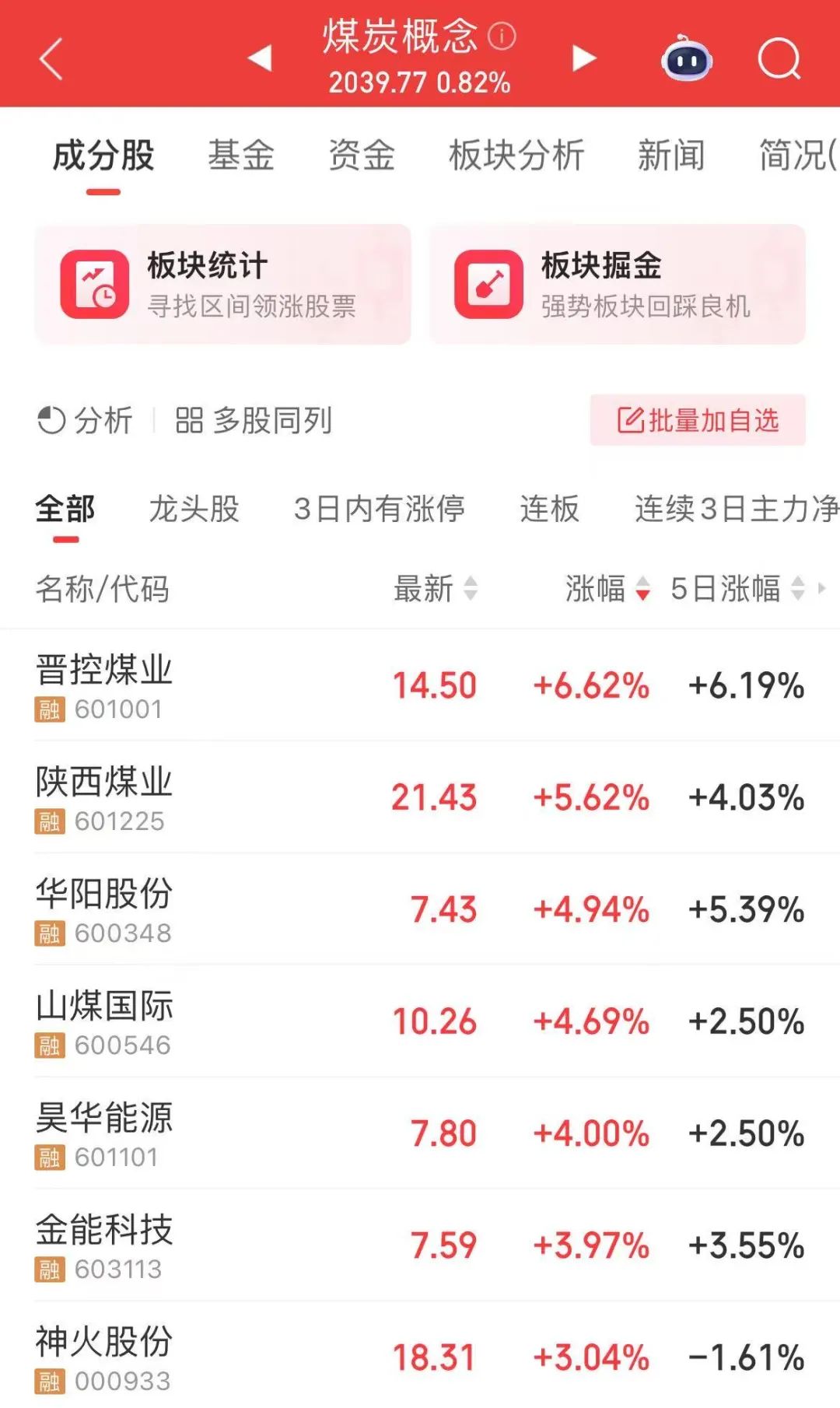 煤炭板块震荡上涨